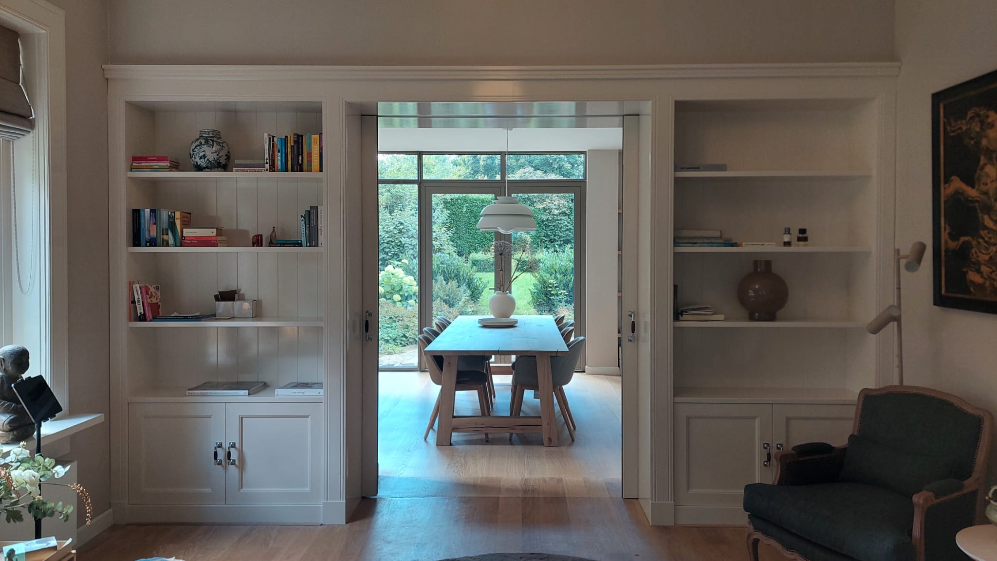 Een kamer en suite is meer dan een stijlvolle scheiding tussen woon- en eetkamer. Het is een tijdloze manier om sfeer, rust en functionaliteit te combineren. Bij Krijnen Timmerwerken Arnhem realiseren we kamer-en-suite oplossingen volledig op maat, met oog voor detail, ruimte en jouw woonstijl.